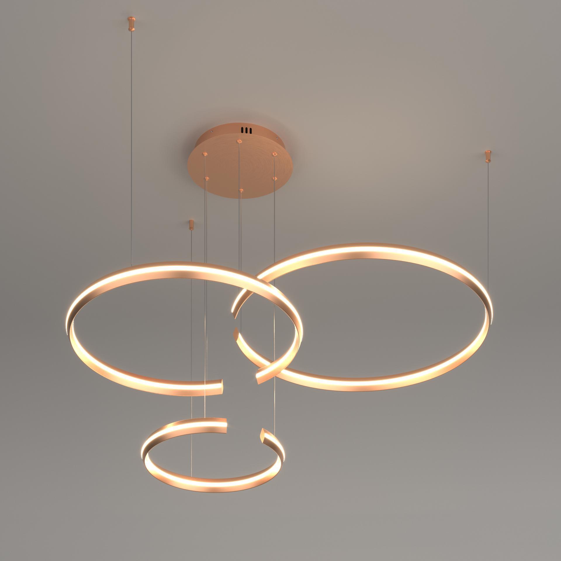 Подвесной светодиодный светильник с ПДУ и управлением по Wi-Fi 90280/3 в золотом цвете поможет организовать качественное освещение на площади 44 м кв. и украсить современный интерьер. Высокотехнологичный светильник оснащен экономичными SMD светодиодами мощностью 160 Вт, создающие световой поток 8000 лм. В производстве подвесной LED люстры использовали высококачественный металл с надежным защитным покрытием. Подвесная светодиодная люстра подходит для установки на любые поверхности, в том числе монтируется в натяжные и подвесные потолки. Наш интернет-магазин предлагает купить подвесной светодиодный светильник с управлением по Wi-Fi по низкой цене с доставкой по России.