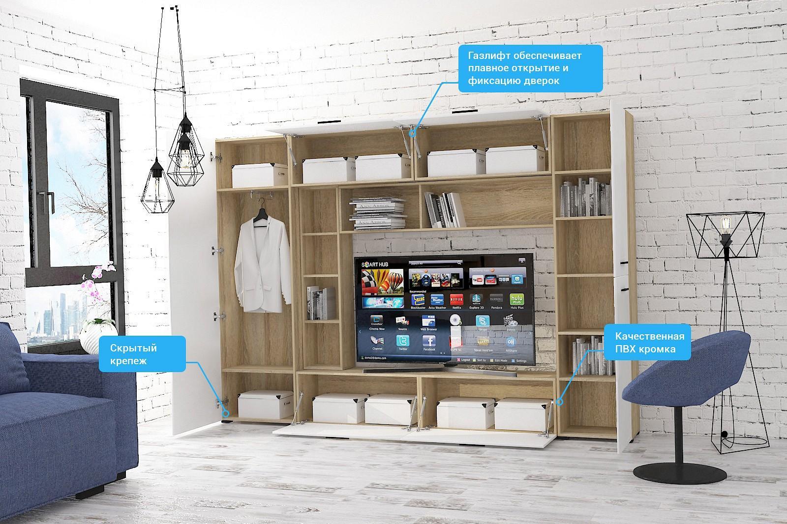 Гостиная модульная - при монтаже можно собрать гостиную зеркально.