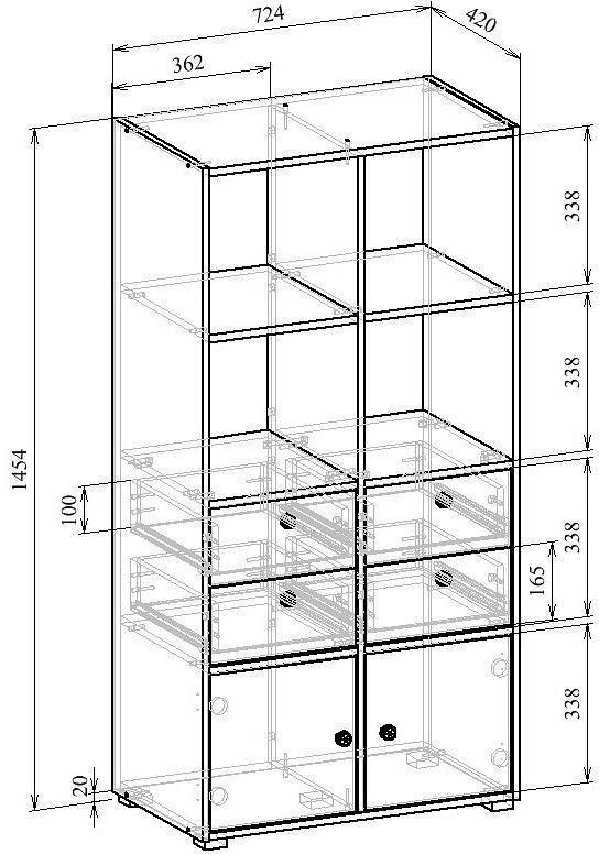 У вас много литературы или вы решили интересно обыграть интерьер, украсив его эксклюзивным декором? Отличным решением будет MAS_STE-PRAIM-42-2-VD - стеллаж комбинированный Прайм-42-2, разработанный специалистами бренда МФ Мастер в рамках коллекции «Прайм-42-2». Благодаря эргономичной форме, он займет совсем немного места, при этом вы сможете разместить в нем все необходимое (ширина стеллажа 724 мм, высота 1454 мм, глубина 420 мм). Стеллаж изготовлен из современных материалов (ЛДСП Е1) и имеет матовый корпус выигрышного оттенка (венге). Производитель предлагает за цену 9699 руб. стеллаж, в комплекте с которым идут 2 полки, 2 дверцы, 4 ящика.