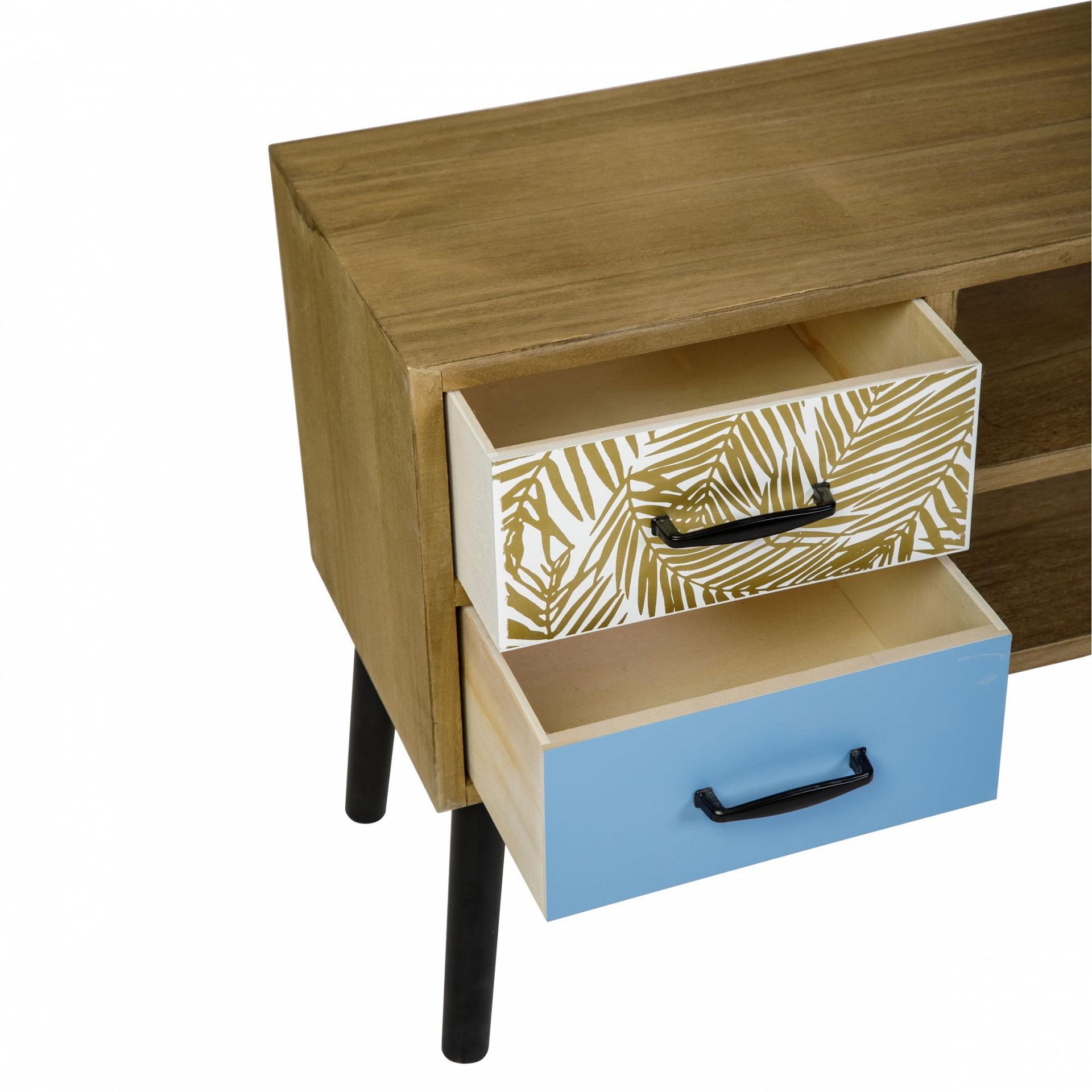 Корпус, ножки и ящики комода изготовлены из дерева (Павловния войлочная), окрашены. В комплекте крепления для сборки.