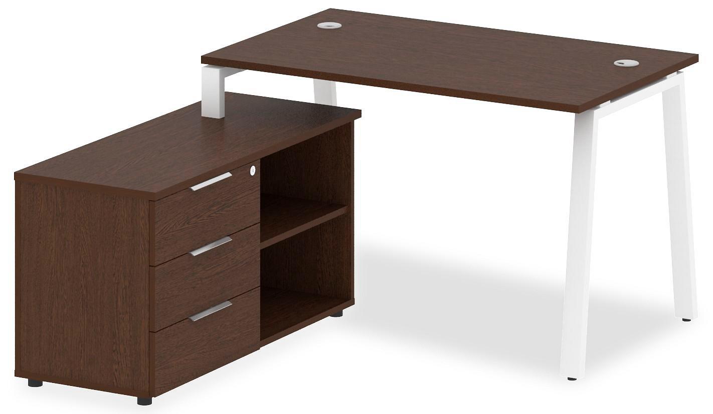 • 3 ящика. Для изготовления корпуса был выбран ЛДСП Е1, металл в оттенке белый, венге, завершает дизайн матовый верхний слой, гармонично сочетающийся со столешницей. Приобрести данную модель вы можете по привлекательной цене, равной 31613 руб.
