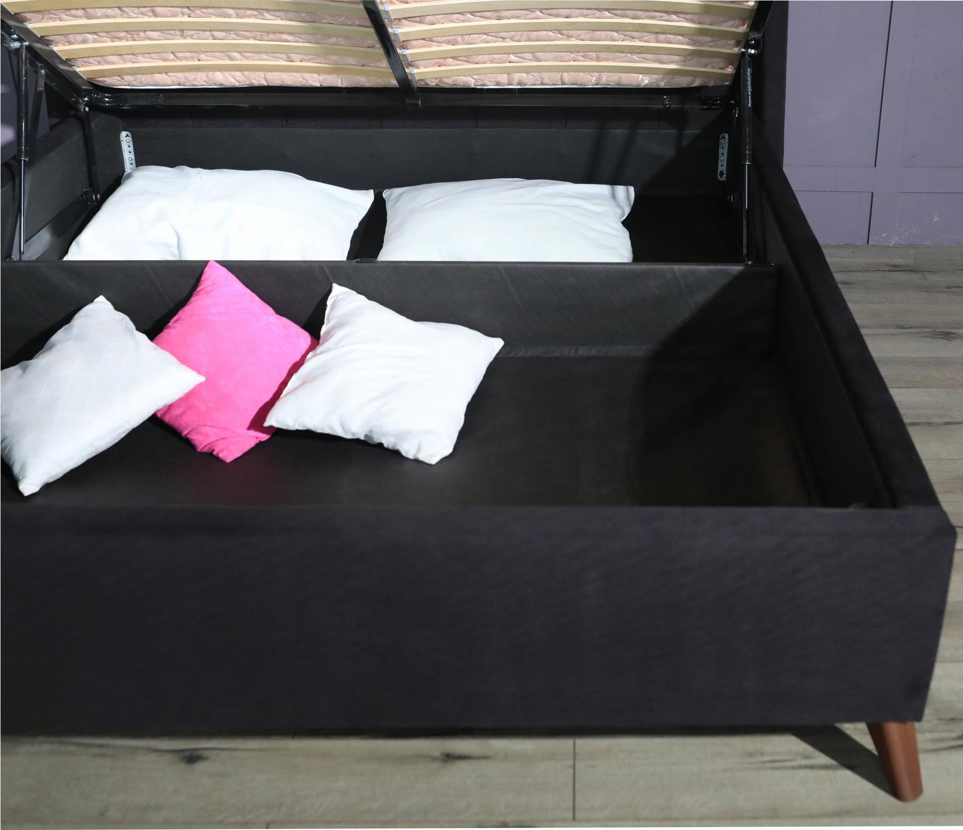 Газлифты повышенной мощности позволяют поднимать и опускать ортопедическую рамку с матрасом без всяких усилий. Подкроватная часть предназначена для хранения постельных принадлежностей, которое закрывается противопыльным матерчатым коробом из плотного спанбонда. Матерчатый короб фиксируется в подматрасном пространстве с помощью системы ленты-липучки "HOOK&LOОP".