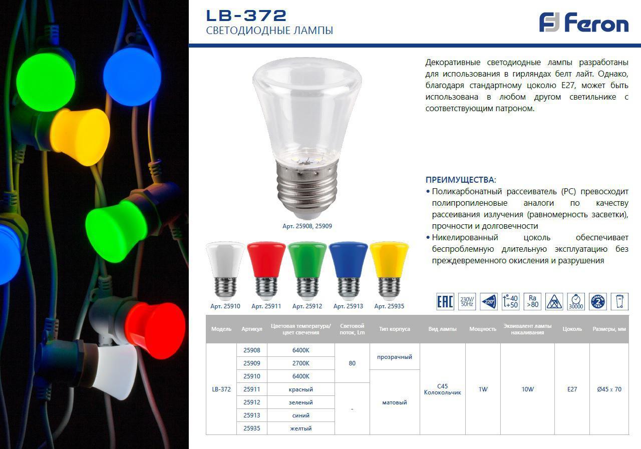 Лампа светодиодная Feron LB-372 Колокольчик матовый E27 1W 6400K