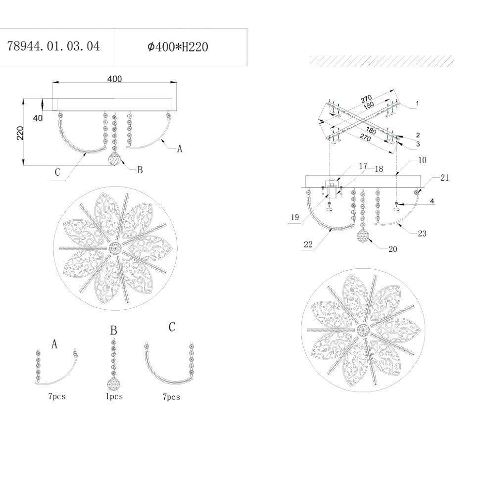 Семь Огней создает продукт от эскиза до готового шедевра. Над созданием светильников трудятся одни из лучших дизайнеров и конструкторов. Наша компания предъявляет высокие требования к производимой продукции, что подтверждено сертификатами качества.ПРЕИМУЩЕСТВАСтильный дизайнНаличие LED подсветкиФункция ночного освещения с низким потреблением электроэнергииУправление функциями люстры с помощью пульта ДУ либо с помощью выключателяПРИМЕНЕНИЕПотолочная люстра предназначена для основного освещения помещений.Люстра подойдет в гостиную, зал, спальню или кухнюКОНСТРУКЦИЯ И МАТЕРИАЛЫЛюстра изготовлена из высококачественных материалов и является безопасной для человека, животных и окружающей средыИспользуемые материалы:металл, стекло, хрустальИсточник света - лампы накаливания мощностью до 60 Вт, светодиодные лампы мощностью до 12 ВтКрепление - накладным способом, с помощью шуруповУдобный крепеж подойдет под все виды потолков: бетон, гипсокартон, натяжные и деревянные потолки.