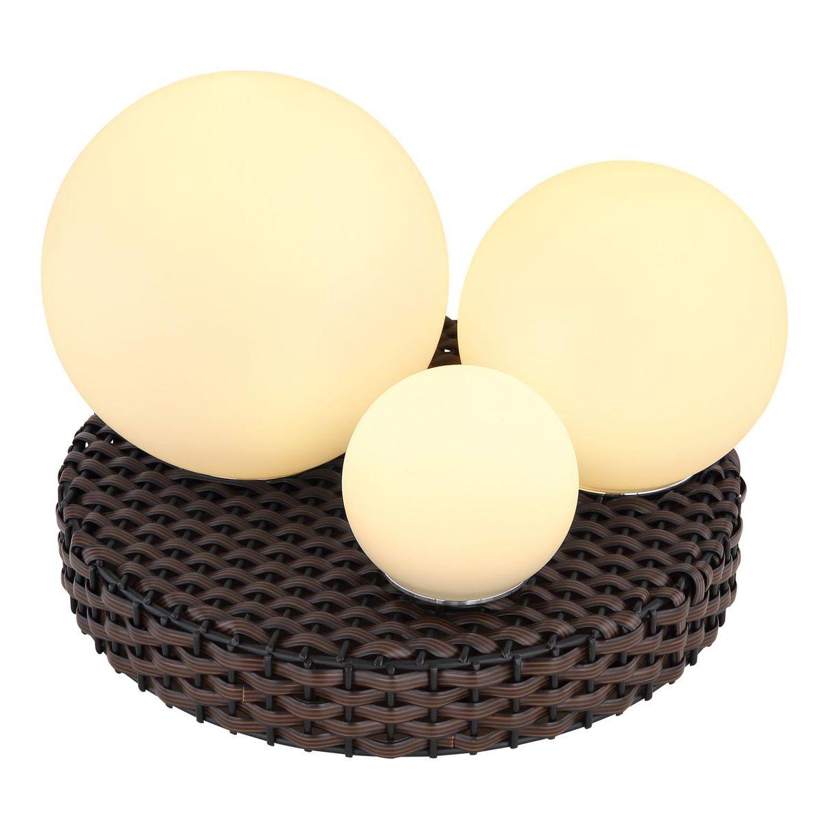 Необыкновенная модель 28852 со встроенным выключателем от австрийской компании Globo относится к коллекции Mamba и отлично подойдет для установки на стол в гостиной, оформленной в стиле кантри. Осветительный элемент встроен в конструкцию и не требует приобретения дополнительных лампочек. Прибор произведен с использованием материалов: ротанг, металл и стекло. Основным цветом товара является белый, коричневый и опаловый. Настольная лампа 28852 продается по цене 10340 руб. Торопитесь сделать заказ в интернет-магазине SvetONe.