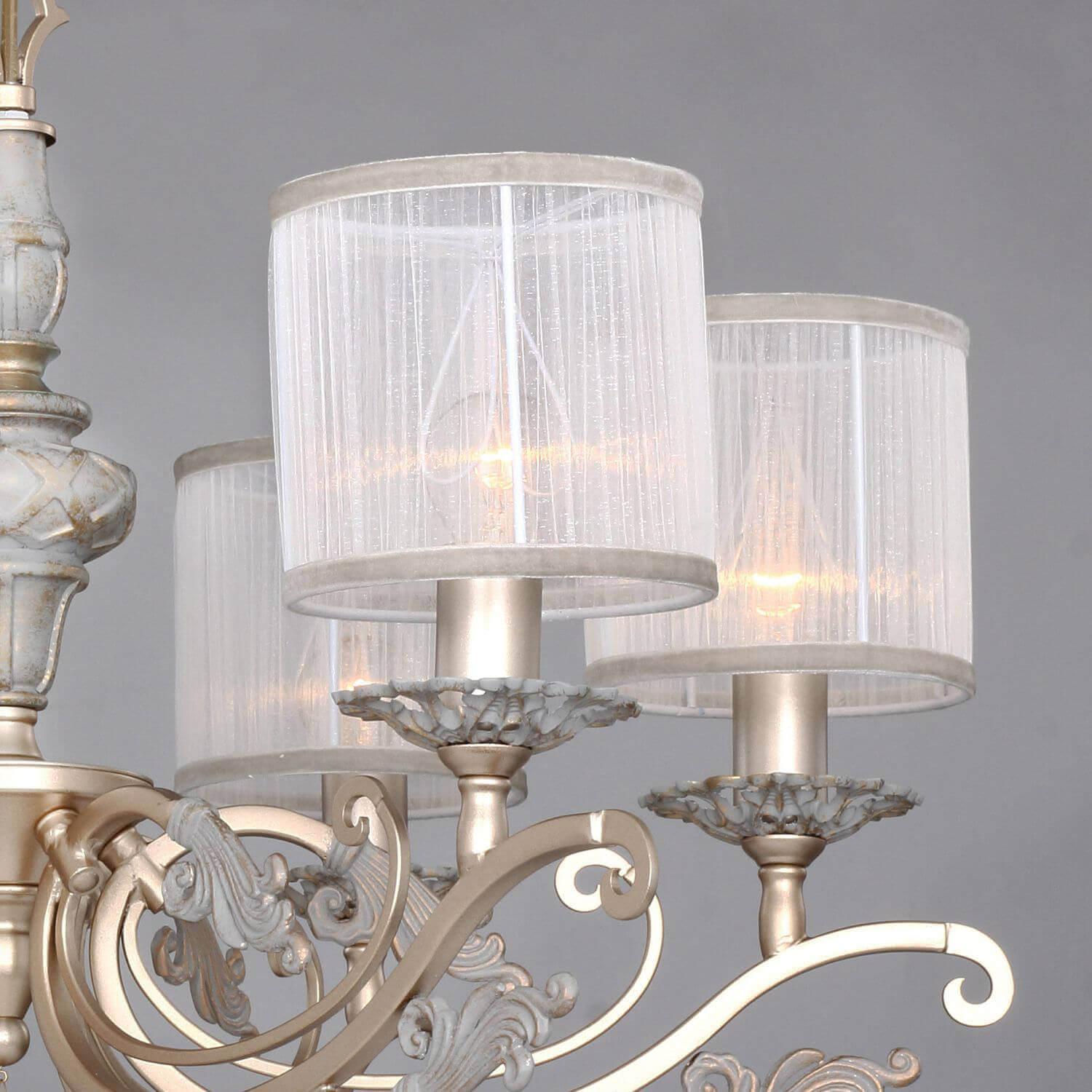 Дивная модель 2307-6P от немецкой компании Favourite относится к коллекции Seraphima и отлично подойдет для установки на потолок спальни, оформленной в классическом стиле. Подвесная люстра Favourite Seraphima 2307-6P с цилиндрическими плафонами осветит помещение площадью 16 кв. м. Производитель Favourite рекомендует использовать для устройства лампы накаливания с цоколем E14 и мощностью 40 W. Прибор произведен с использованием материалов: текстиль, металл и органза и может использоваться для натяжного потолка. Основным цветом товара является белый и золотой. Подвесная люстра 2307-6P продается по цене 26620 руб. Торопитесь сделать заказ в интернет-магазине SvetONe.