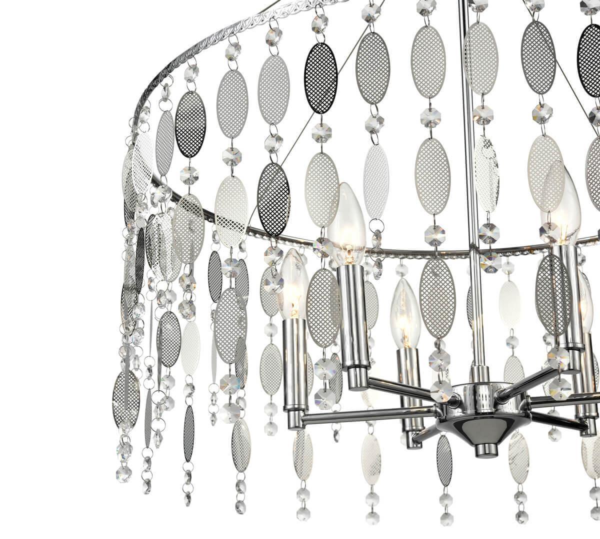 Изумительная модель VL4093P61 от итальянской компании Vele Luce относится к коллекции Grace и отлично подойдет для установки на потолок спальни, оформленной . Подвесная люстра Vele Luce Grace VL4093P61 осветит помещение площадью 9 кв. м. Производитель Vele Luce рекомендует использовать для устройства лампы накаливания с цоколем E14 и мощностью 40 W. Прибор произведен с использованием материала: металл. Основным цветом товара является хромовый. Торопитесь сделать заказ в интернет-магазине SvetONe.