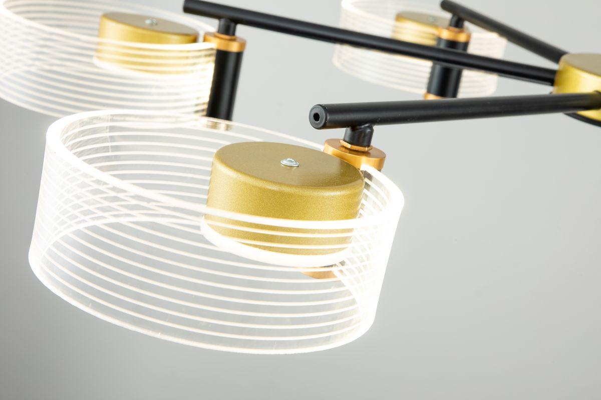 Потрясающая модель 10226/8LED от великобританской компании Escada относится к коллекции Cloud и отлично подойдет для установки на потолок в гостиной, оформленной в дизайнерском стиле. Подвесная светодиодная люстра Escada Cloud 10226/8LED с цилиндрическими плафонами осветит помещение площадью 19 кв. м. холодным светом. Осветительный элемент встроен в конструкцию и не требует приобретения дополнительных лампочек. Прибор произведен с использованием материалов: пластик, металл и акрил и может использоваться для натяжного потолка. В комплект поставки входит пульт дистанционного управления. Основным цветом товара является золотой и черный. Подвесная светодиодная люстра 10226/8LED с диммером продается по цене 24800 руб. Торопитесь сделать заказ в интернет-магазине SvetONe.