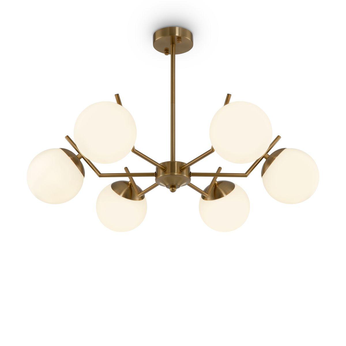 Неподражаемая модель FR5173PL-06BS от немецкой компании Freya относится к коллекции Moon и отлично подойдет для установки на потолок в гостиной, оформленной в скандинавском стиле. Потолочная люстра Freya Moon FR5173PL-06BS с плафонами в виде шаров осветит помещение площадью 24 кв. м. Производитель Freya рекомендует использовать для устройства лампы накаливания с цоколем E27 и мощностью 60 W. Прибор произведен с использованием материалов: стекло и металл и может использоваться для натяжного потолка. Основным цветом товара является белый и латунный. Потолочная люстра FR5173PL-06BS продается по цене 12590 руб. Торопитесь сделать заказ в интернет-магазине SvetONe.