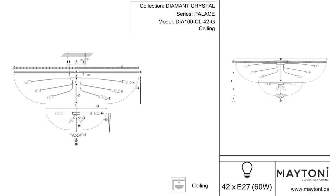 Потолочная люстра Maytoni Palace DIA100-CL-42-G