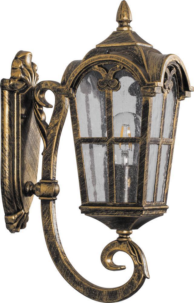 Светильник садово-парковый, серии «Кастелло» (НБУ) FERON PL102 1*60W, E27, 230V, IP44, цвет черное золото, 4-х гранник, на стену вверх, 150*255*480мм