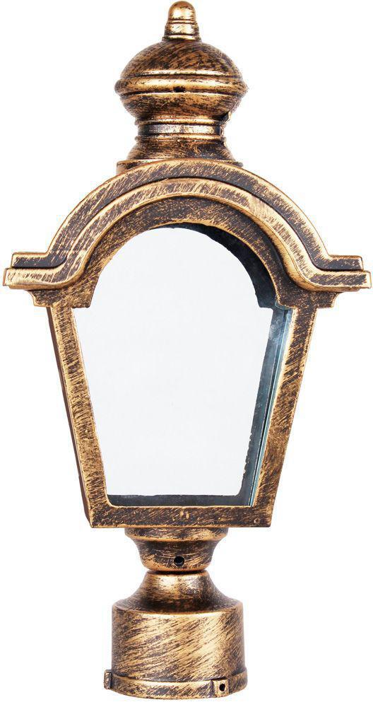 Светильник садово-парковый, серии «Византия» (НТУ) FERON PL4015 1*60W, E27, 230V, IP44, цвет черное золото, 4-х гранник, на столб, 170*100*330мм